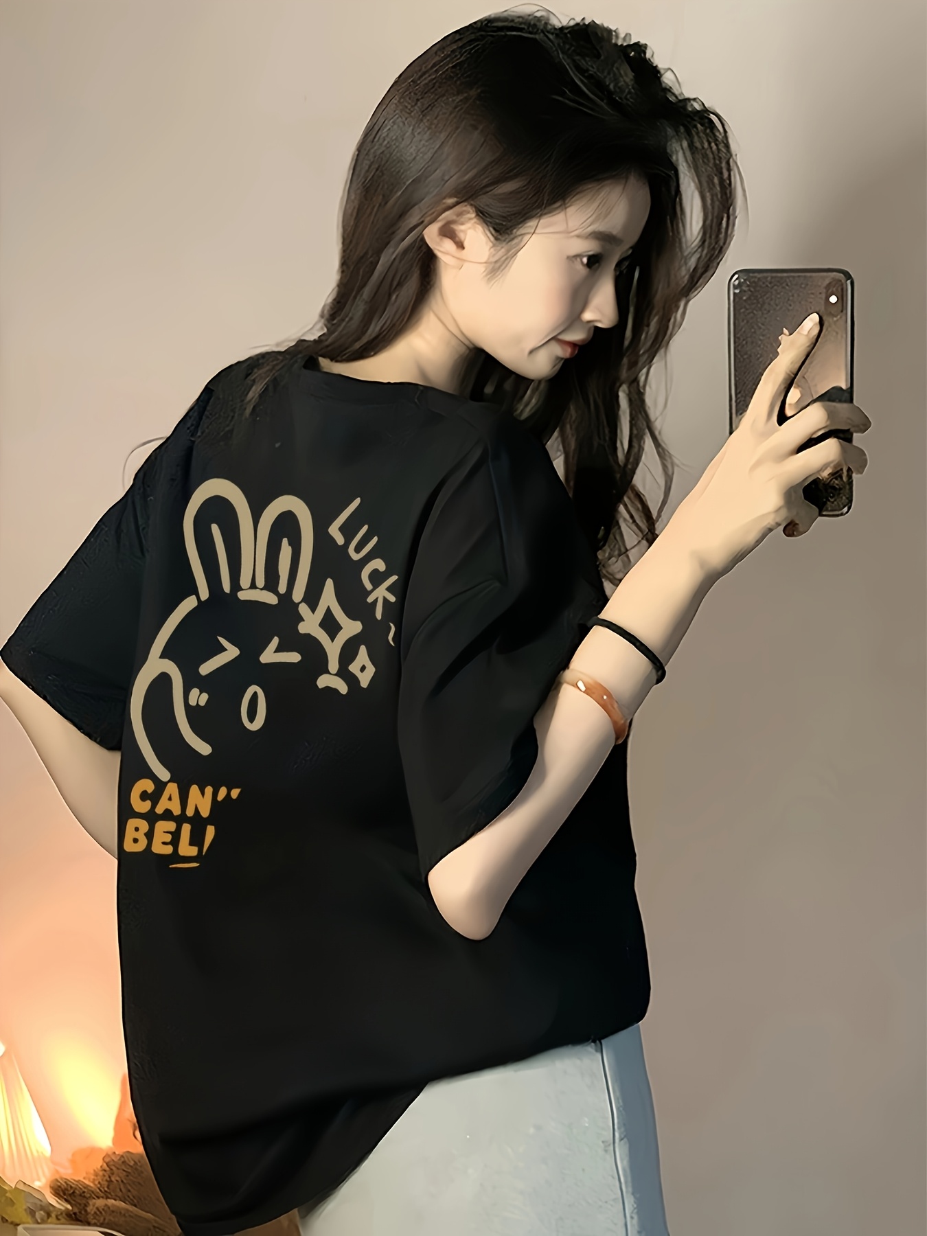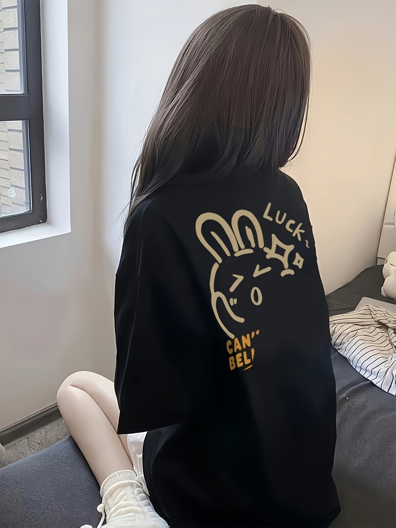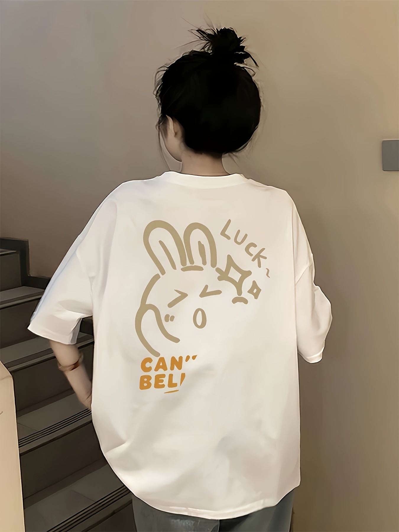 Plus Size, Plus Size Women's Oversized T-Shirt - Cute Cartoon Rabbit & \